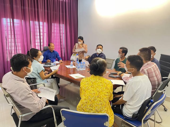 This image shows a gathering between post-surgery patients and Mr. Sun Sae, Chairman of KH HEALTHPLUS, at the company office located in Borey Pipup Thmey, Sen Sok, Phnom Penh.